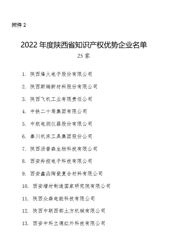 近日,陜西省知識(shí)產(chǎn)權(quán)局公示了“2022年度陜西省知識(shí)產(chǎn)權(quán)示范企業(yè)、 優(yōu)勢(shì)企業(yè)擬確定名單”,我司憑借多年對(duì)知識(shí)產(chǎn)權(quán)工作的深耕,經(jīng)過專家評(píng)審及集體審議后被認(rèn)定為“2022年度陜西省知識(shí)產(chǎn)權(quán)優(yōu)勢(shì)企業(yè)”。