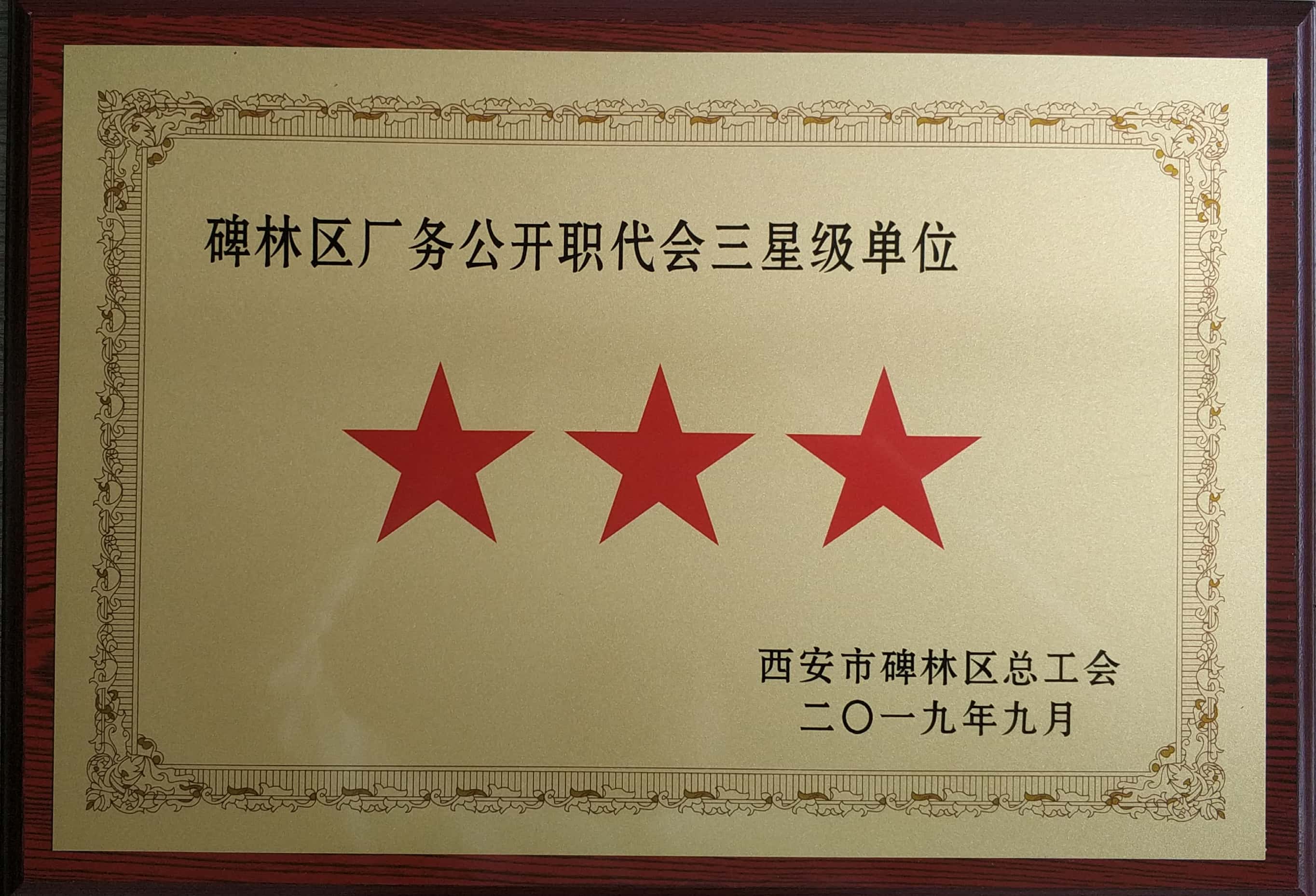 2019年9月22日,西安市碑林區(qū)總工會(huì)舉行了表彰大會(huì),會(huì)議旨在堅(jiān)持依習(xí)近平新時(shí)代中國(guó)特色社會(huì)主義思想為指導(dǎo),充分發(fā)揮工會(huì)職工組織職能和工人階級(jí)主力軍作用,特對(duì)本區(qū)企業(yè)和個(gè)人進(jìn)行表彰。在此會(huì)議上,陜西金禹科技發(fā)展有限公司獲得碑林區(qū)2019年度“廠務(wù)公開(kāi)職代會(huì)三星級(jí)單位”榮譽(yù)稱號(hào)。